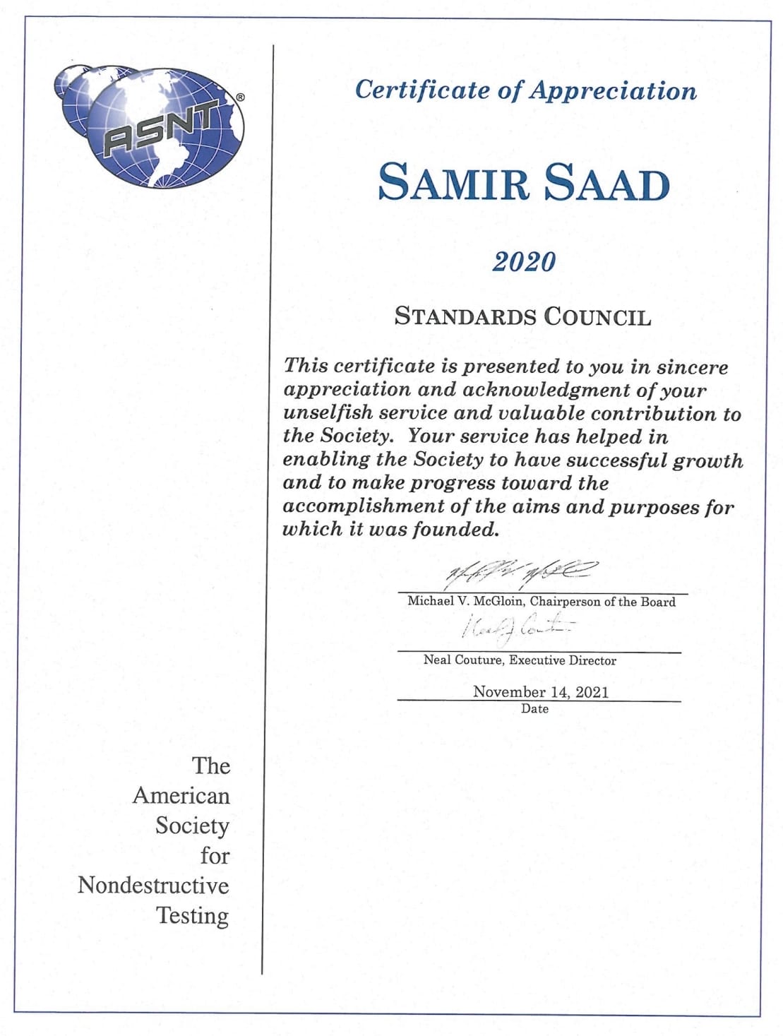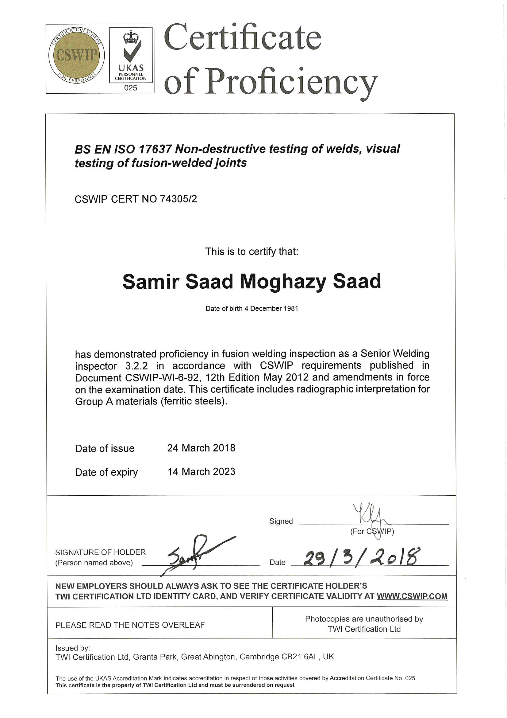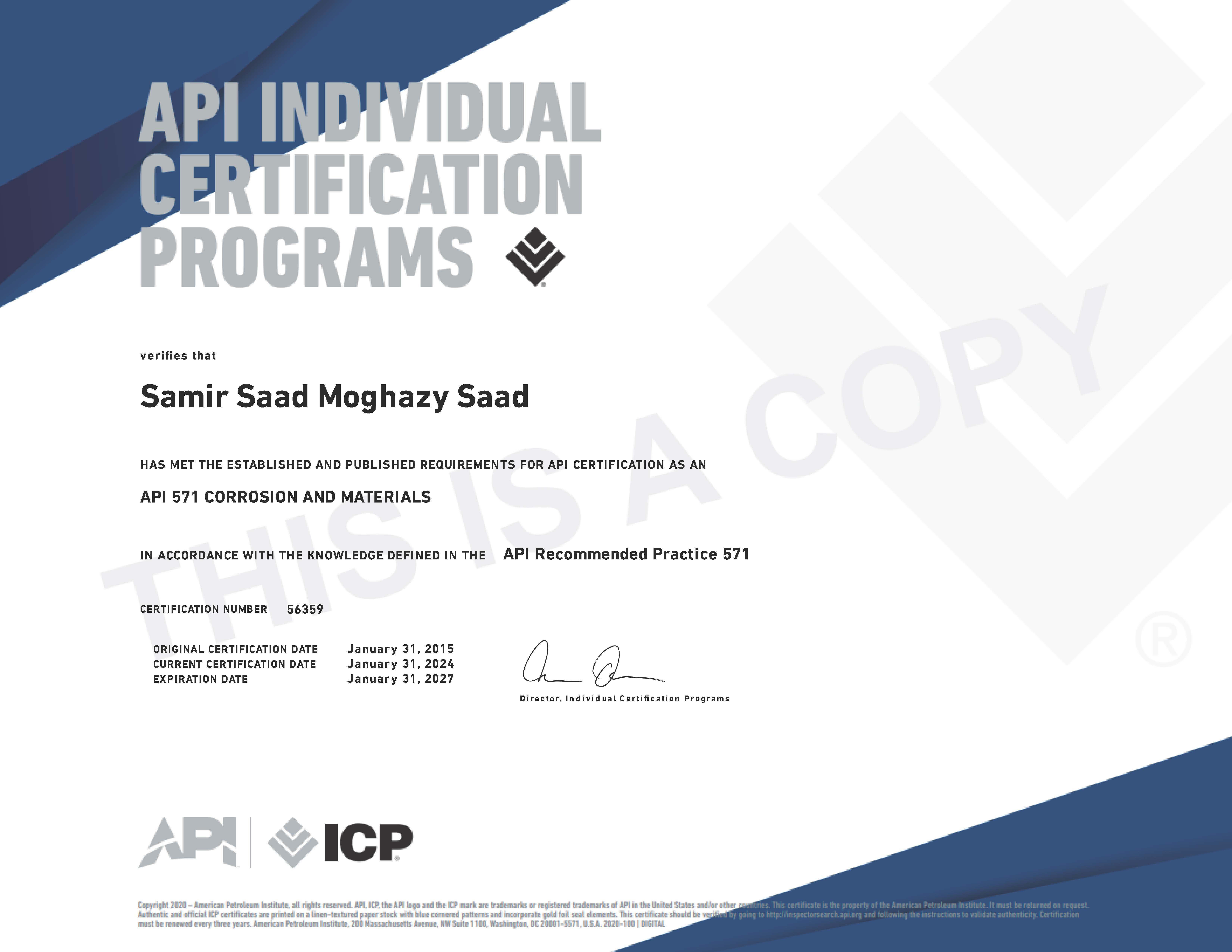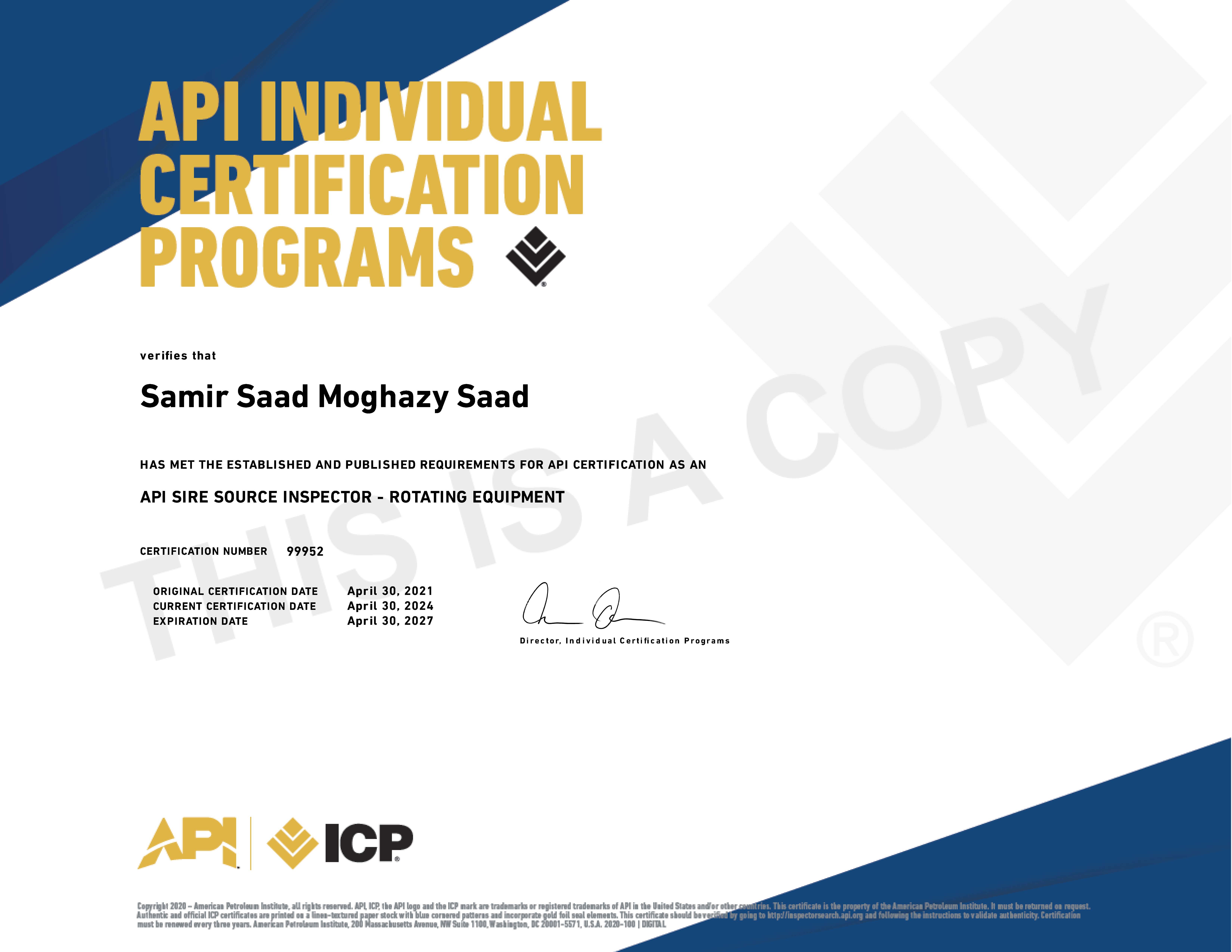 Recognized by the World Book of Records for holding the most international certificates (31) from organizations such as API, ASNT, AWS, PMI, and TWI at the age of 40